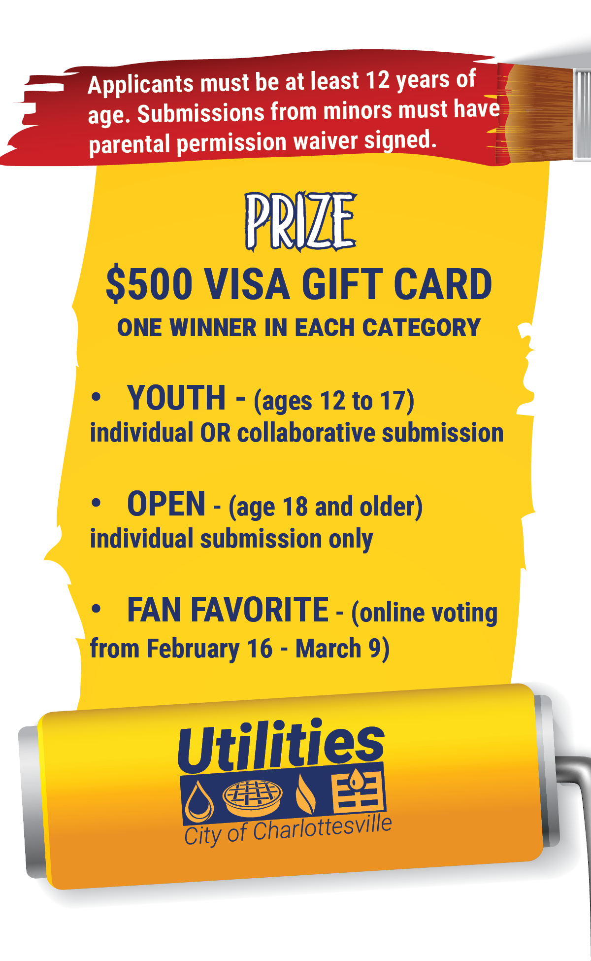 - Contest is open to all community members aged 12 years or older. Submissions from those under the age of eighteen (18) will require a parent or legal guardian signature to be accepted.