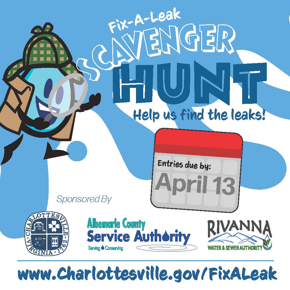 More information about the Fix a Leak campaign, the Fix a Leak Scavenger Hunt Worksheet, and how to find and fix water leaks: www.charlottesville.gov/FixALeak